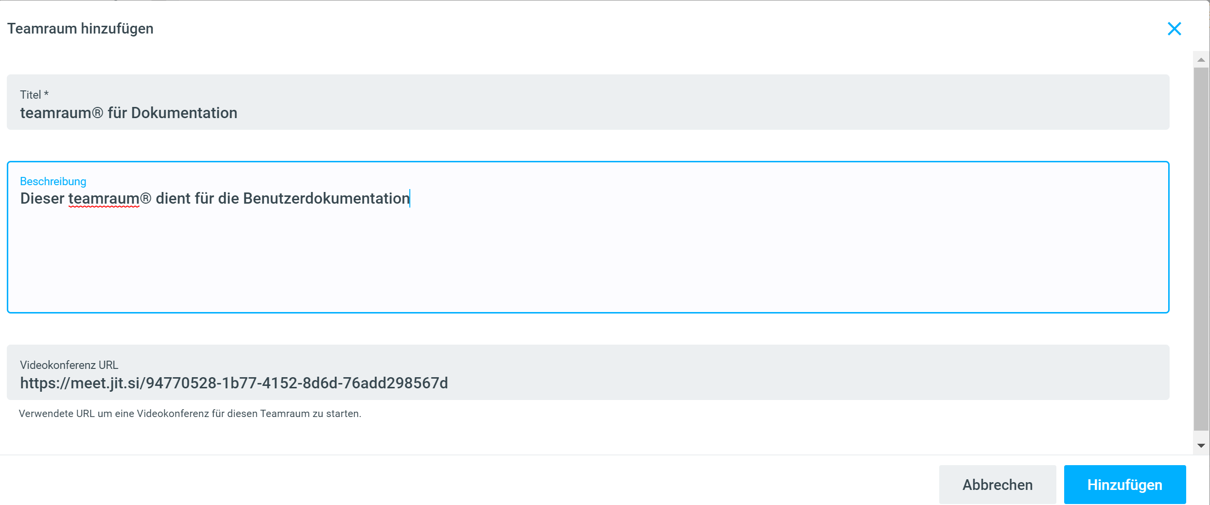 Pour chaque espace de travail, vous pouvez ajouter une vidéoconférence, par exemple Jitsi, Zoom ou autres.