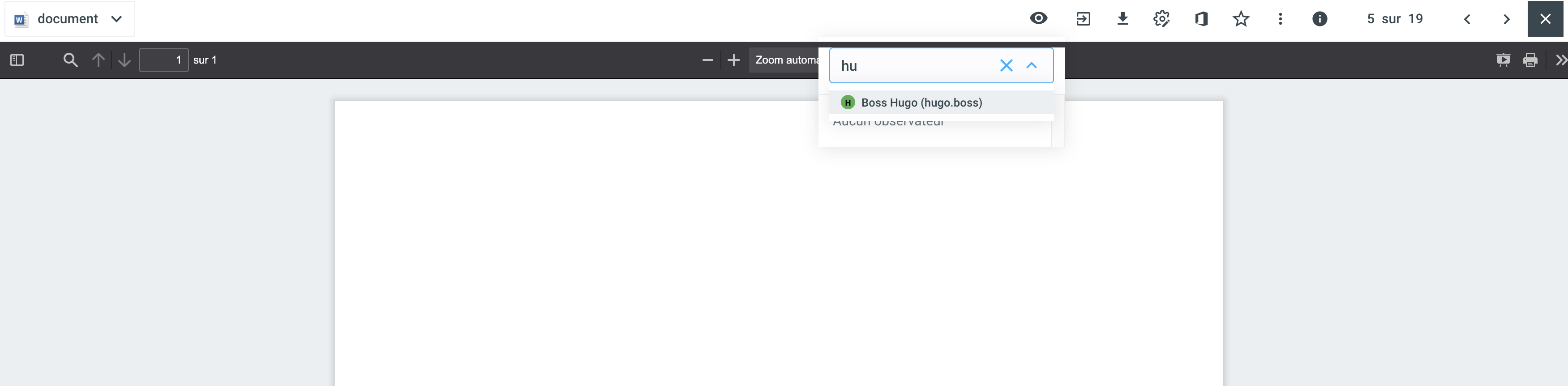 En cliquant sur le symbole de l'œil, vous pouvez saisir les personnes qui observeront le document correspondant. Toute personne inscrite à cette fonction sera informée des modifications suivantes apportées au document en question :