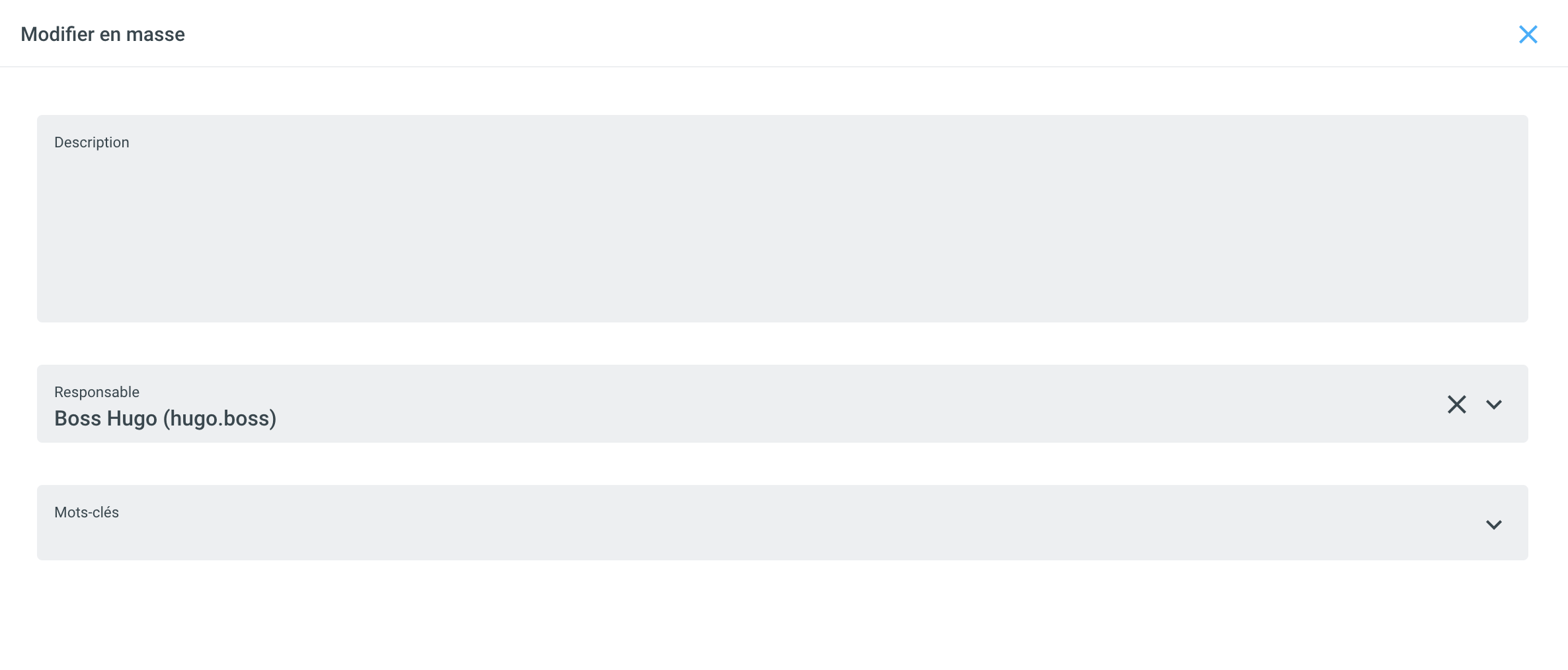 Actuellement, les métadonnées suivantes peuvent être modifiées en une seule étape de travail pour tous les documents sélectionnés :