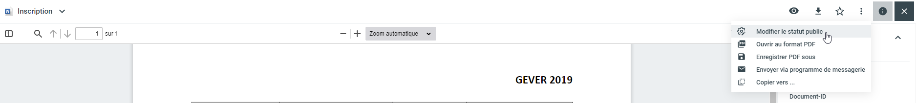 Cliquez sur les trois points (=actions supplémentaire) dans le document concerné, puis sur l'élément de menu Modifier le statut public.