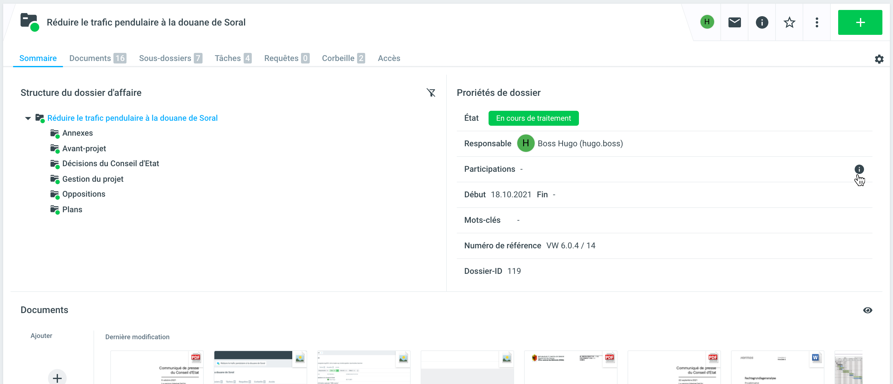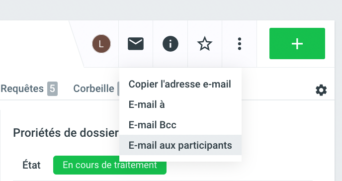 Pour ajouter des participants à un dossier, cliquez sur le i à côté du champ Participants dans l'aperçu du dossier.