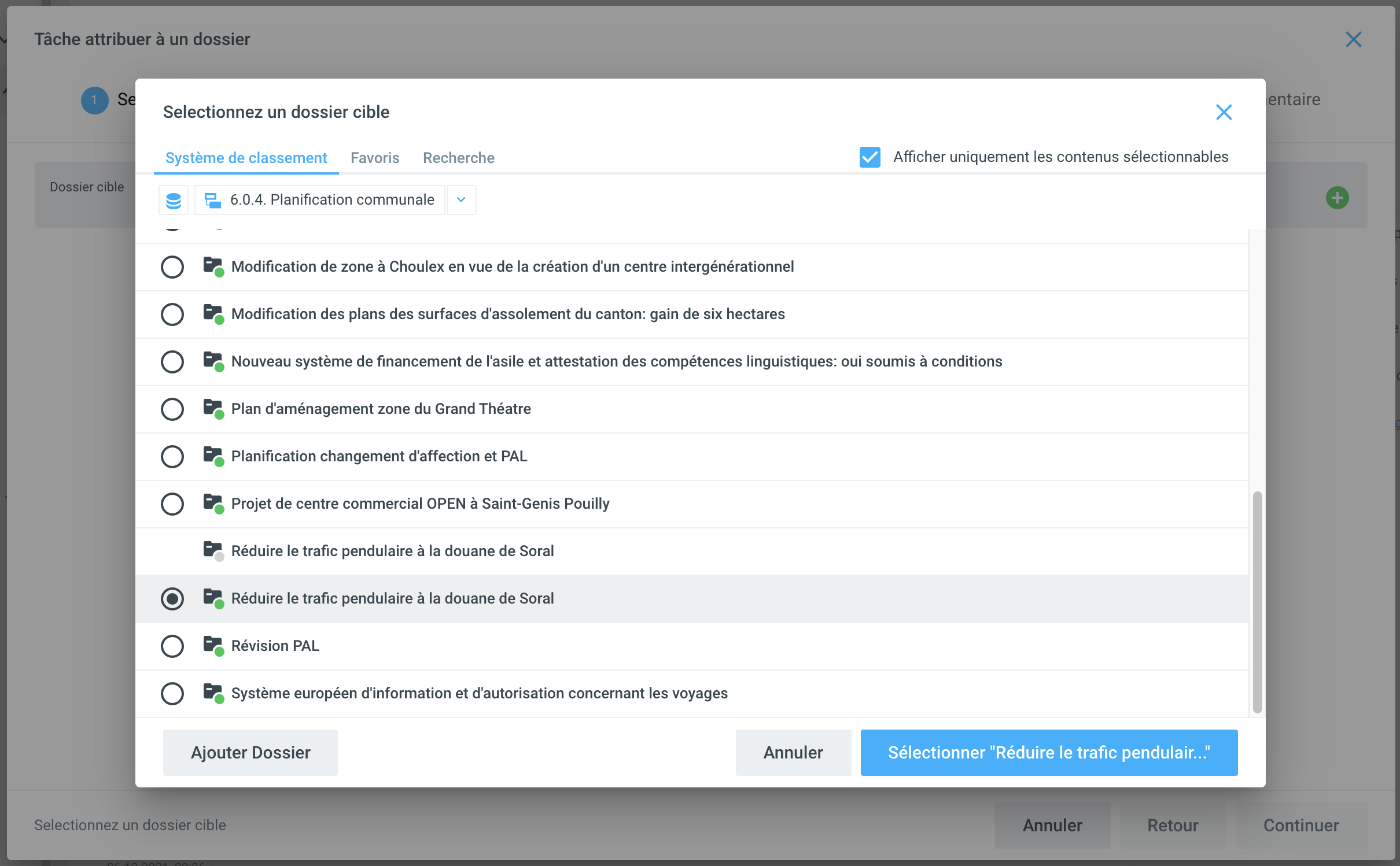 Affecter à un dossier existant ou nouveau
