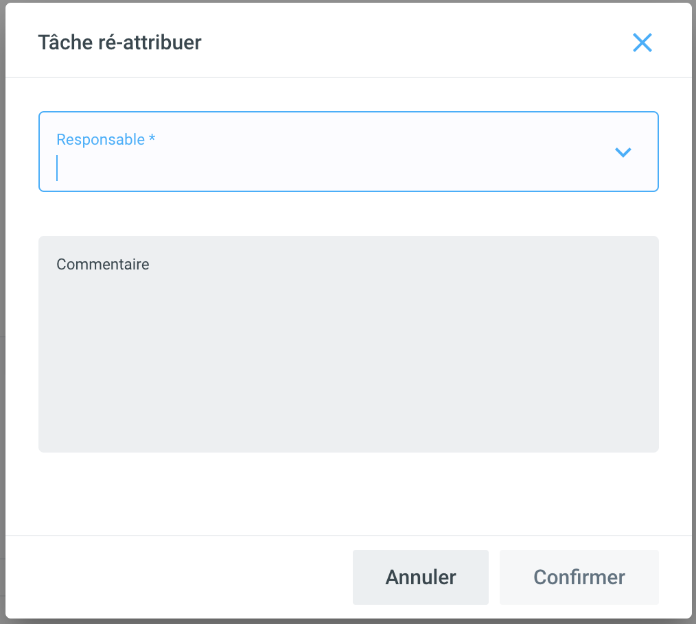 L'action Réattribuer permet d'attribuer la boîte de réception à une autre personne. La boîte de réception est ensuite affichée dans l'onglet de synthèse et peut être traitée comme une tâche normale.