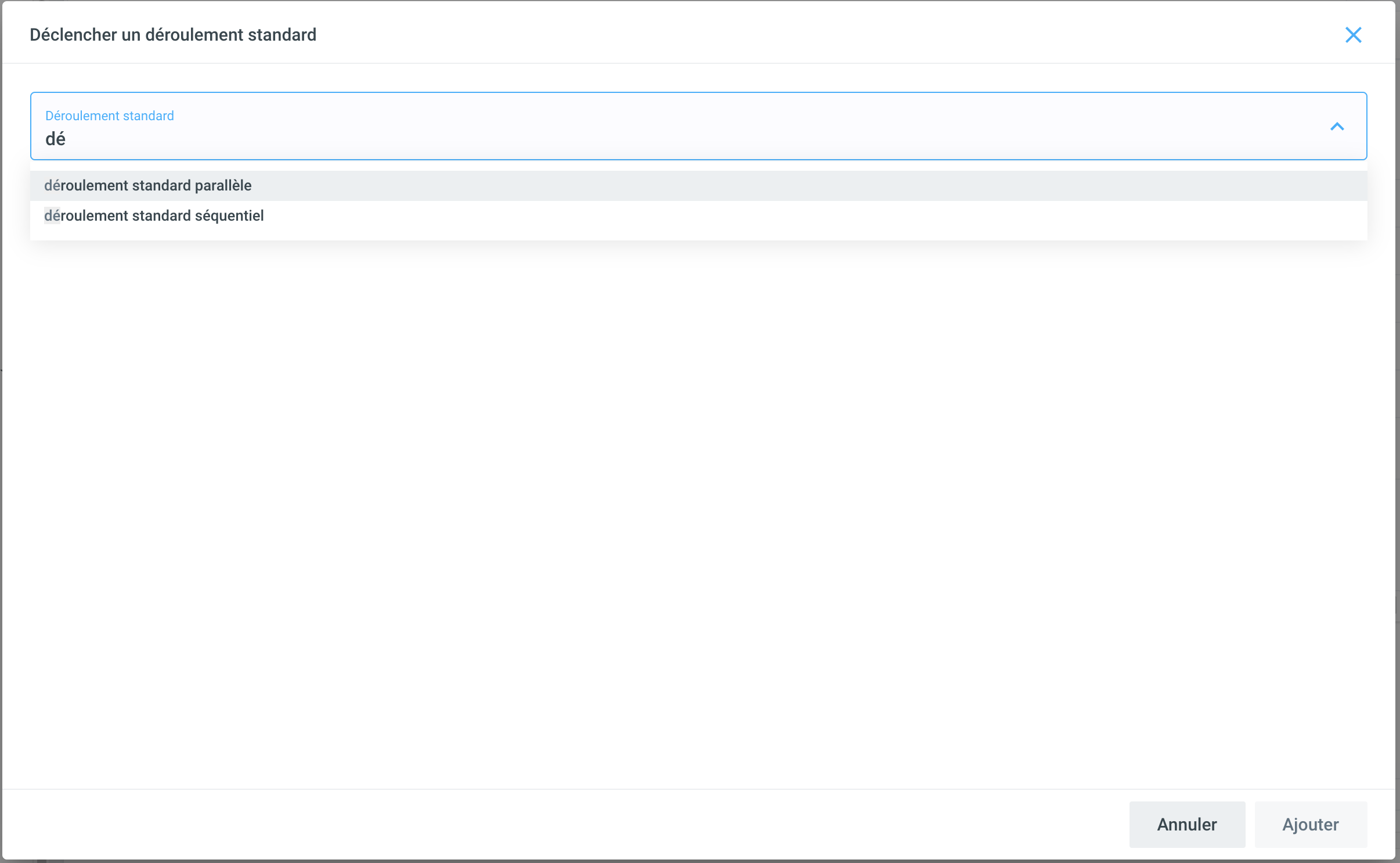 Déclenchement d'un déroulement standard