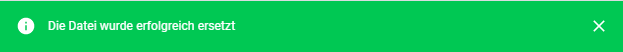Wenn die Datei erfolgreich hochgeladen wurde, erscheint oben im System eine entsprechende Systemmeldung in grün.