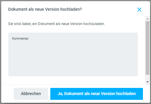Wenn Sie die Datei loslassen, erscheint die nachfolgende Systemmeldung. Dort können Sie bei Bedarf noch einen Kommentar zur neuen Version erfassen.