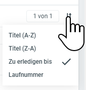 Standardmässig wird eine Aufgabenauflistung nach dem Wert Zu erledigen bis sortiert. Sie können dies mit Klick auf die beiden Pfeile rechts oben in der Auflistung beliebig ändern.