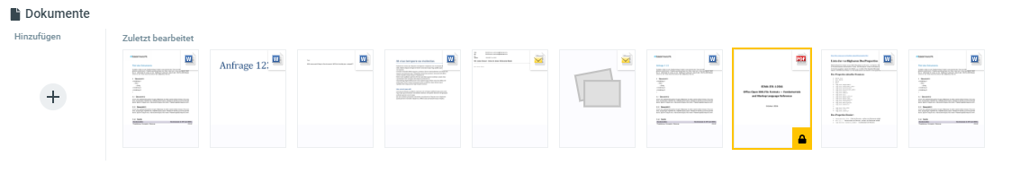 Die zehn zuletzt bearbeiteten Dokumente innerhalb eines Dossiers finden sich auf der Dossierübersicht. Dabei wird auch sofort sichtbar, wenn von diesen Dokumenten welche ausgecheckt sind.