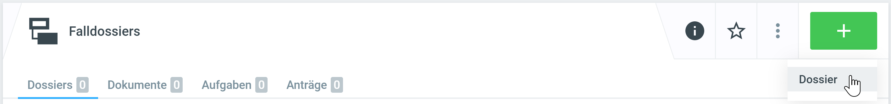 Wenn Sie ein Dossier aus einer Dossiervorlage erstellen möchten, finden Sie auf der Seite Ein Dossier mittels Dossiervorlage eröffnen weitere Informationen.