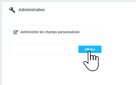 La gestion des champs personnalisés est accessible depuis le menu de navigation principale Administration , dans le Card Gérer les champs personnalisés.