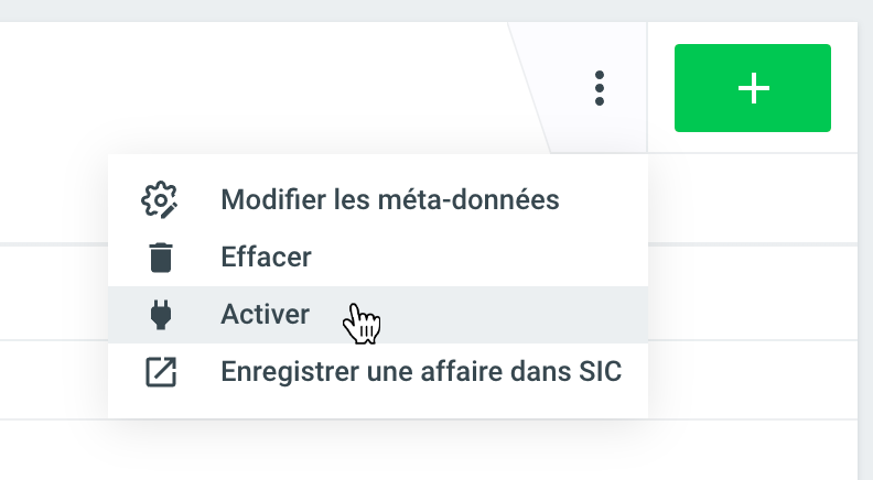 Les modèles de dossier peuvent également être stockés sur les rubriques comme seul modèle de dossier utilisable. Pour ce faire, allez dans la rubrique concernée, sélectionnez Modifier les métadonnées sous Autres actions (=trois points) et sélectionnez le modèle souhaité dans le champ Modèles de dossiers autorisés. En retirant la coche Autoriser l'ajout de dossiers d'affaire, la fonction Ajouter un dossier standard peut être désactivée.
