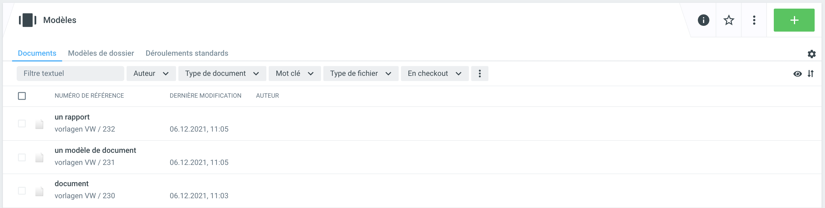 Lors de la création d'un nouveau modèle de document, vous avez également la possibilité de stocker simplement le fichier du modèle créé dans l'onglet Documents en utilisant la fonction glisser-déposer, tout comme la création d'un nouveau document dans un dossier.