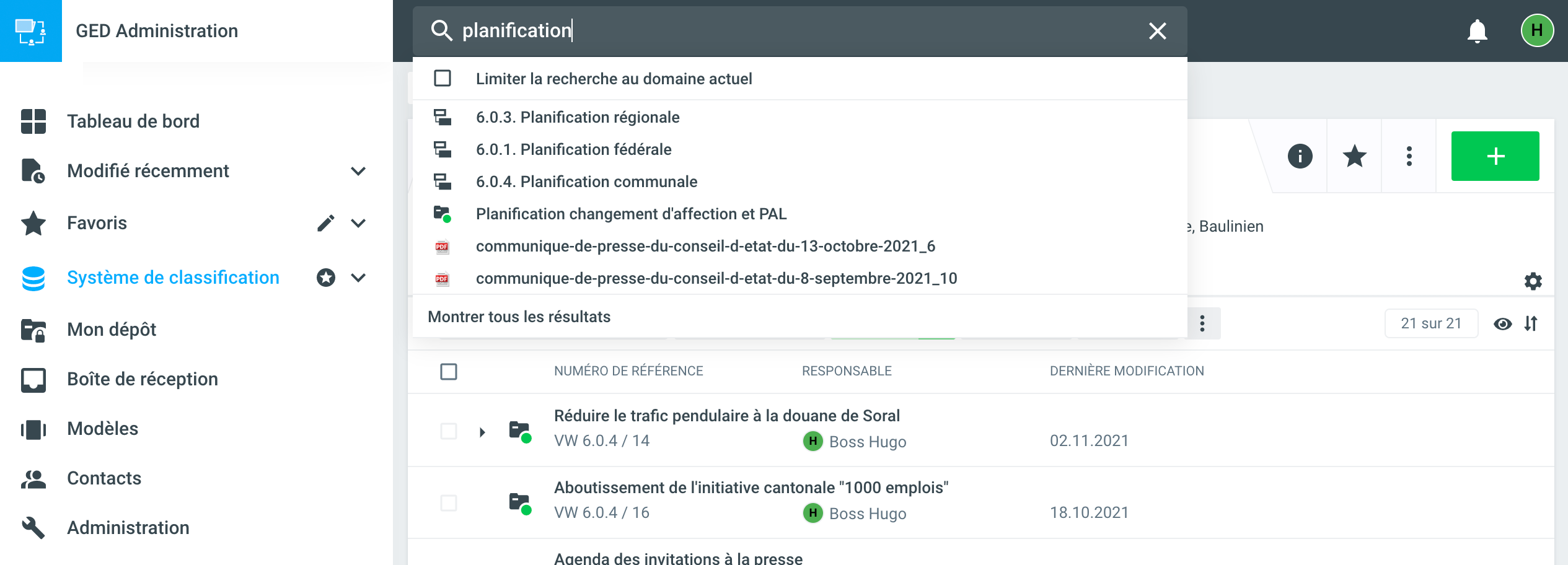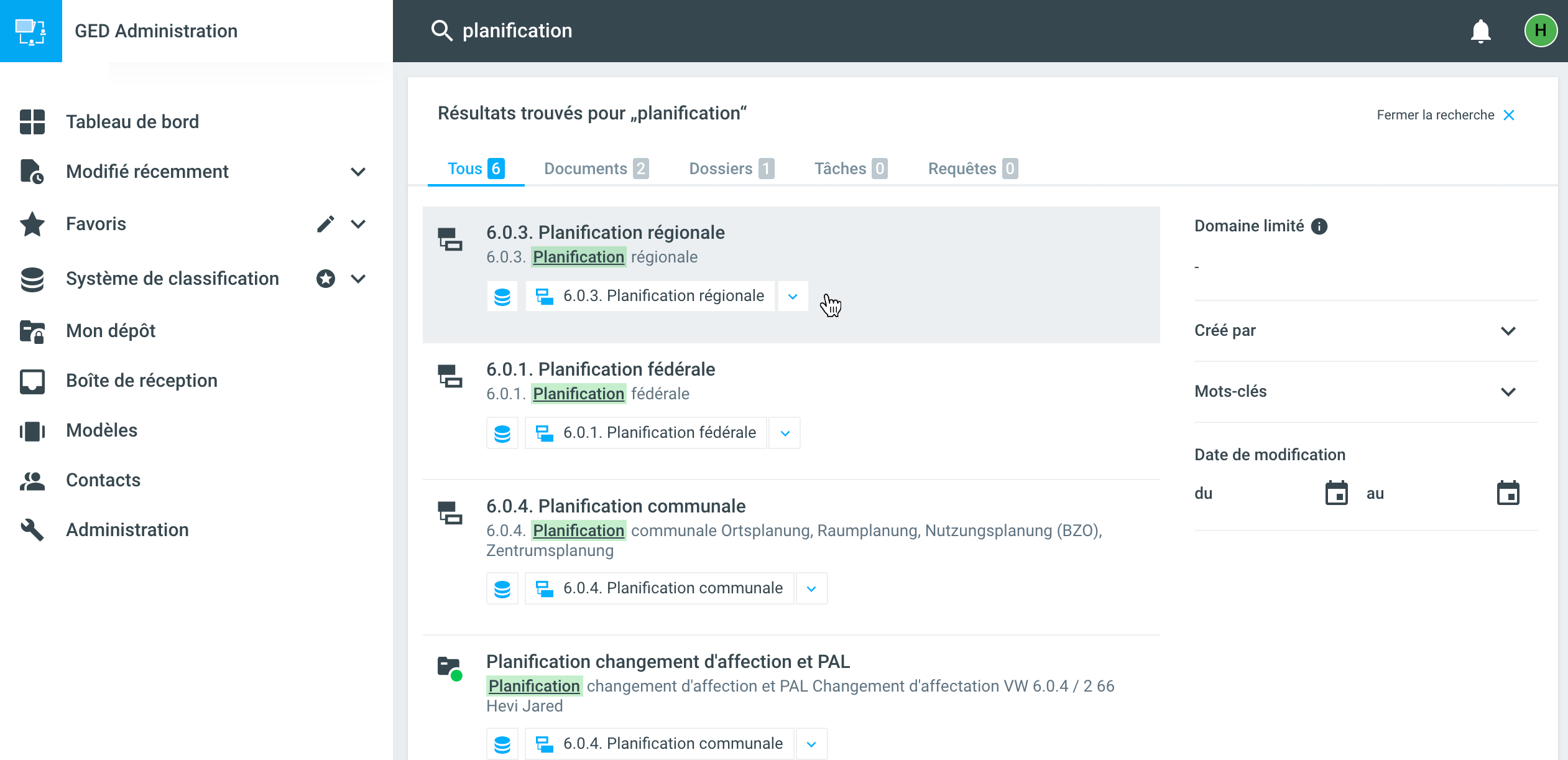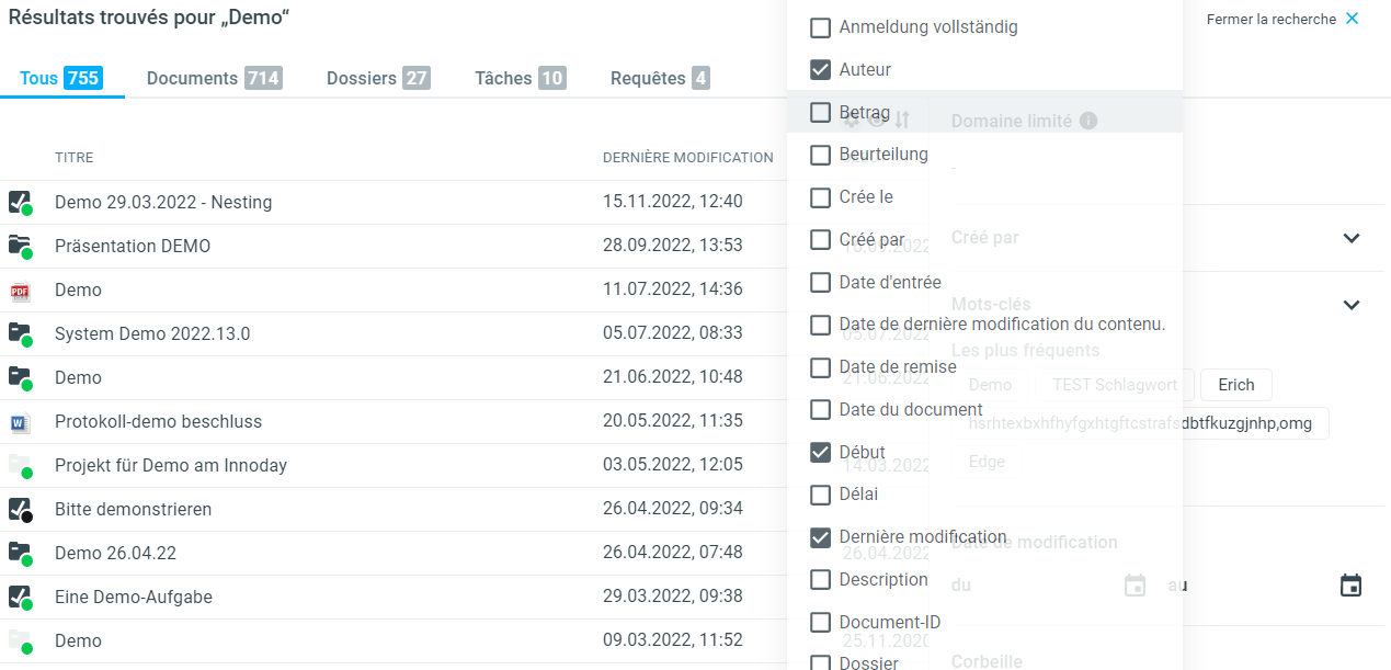 Fabasoft OneGov dispose d'une recherche plein texte performante et sophistiquée sur l'ensemble des contenus GEVER.