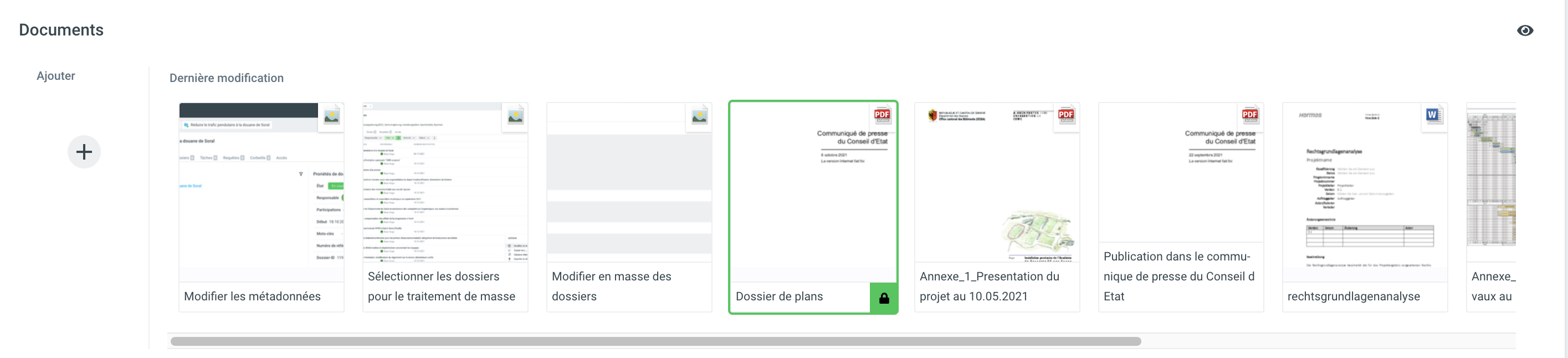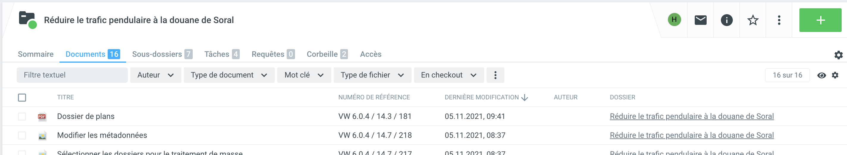 Les dix derniers documents traités dans un dossier peuvent être consultés dans la vue d'ensemble du dossier. Il est également immédiatement visible si l'un de ces documents a été vérifié.