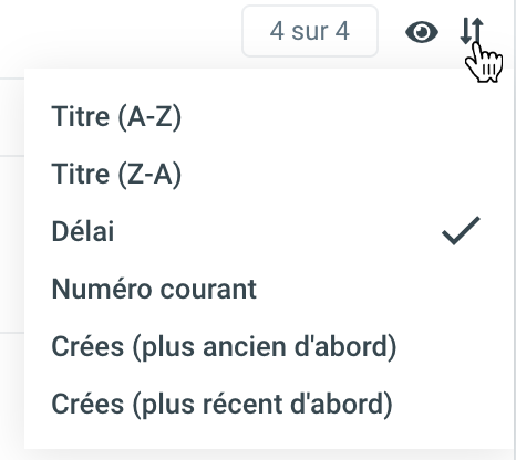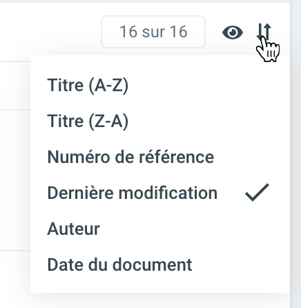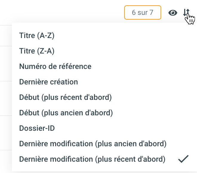 Par défaut, la liste des dossiers est triée de manière à ce que le dernier dossier modifié soit affiché en premier. Vous pouvez le modifier comme vous le souhaitez en cliquant sur les deux flèches en haut à droite de la liste.
