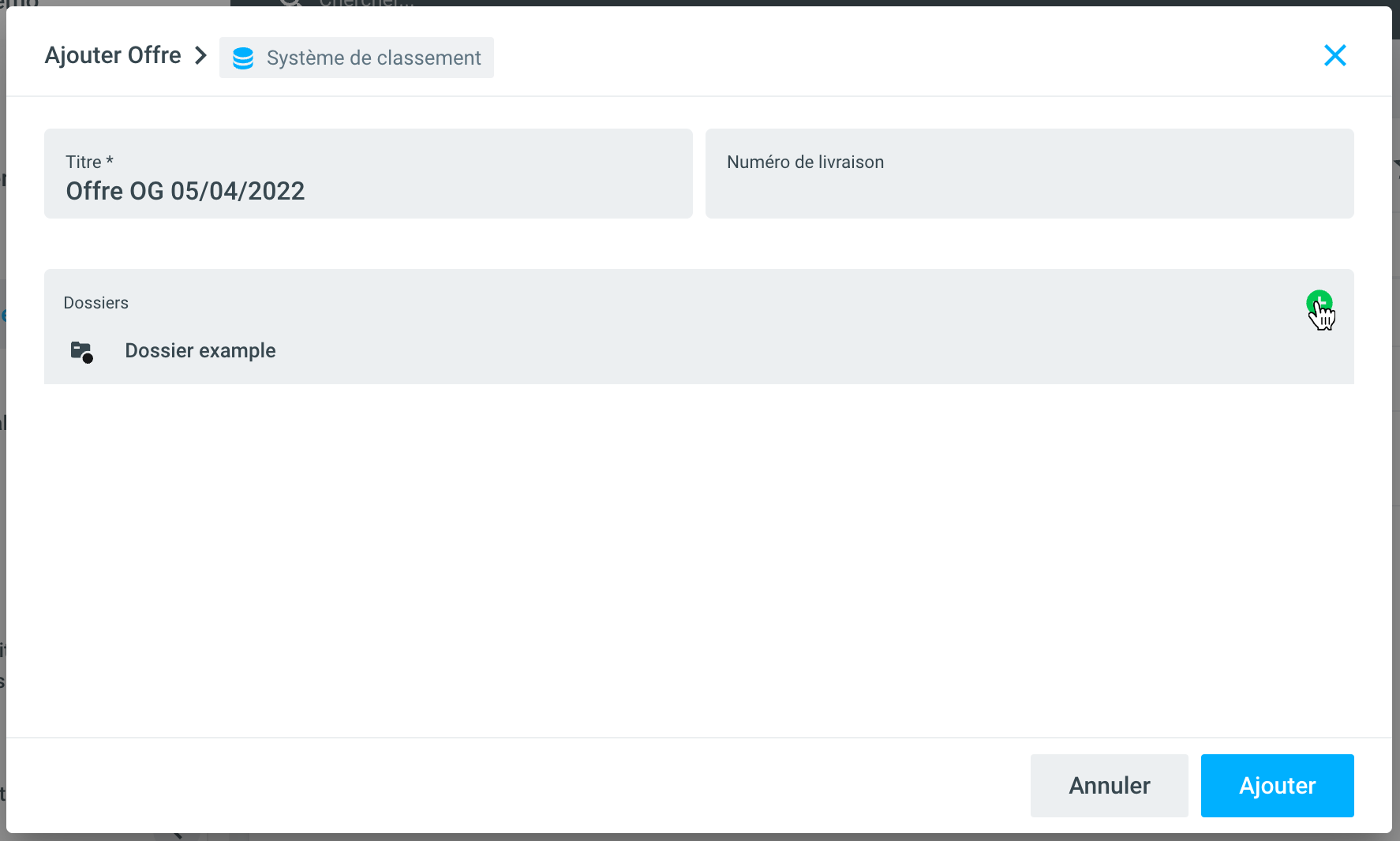 Enfin, vous pouvez également saisir le numéro de livraison de l'offre dans cette étape. Pour ce faire, cliquez sur le symbole du crayon à côté du champ de métadonnées correspondant.