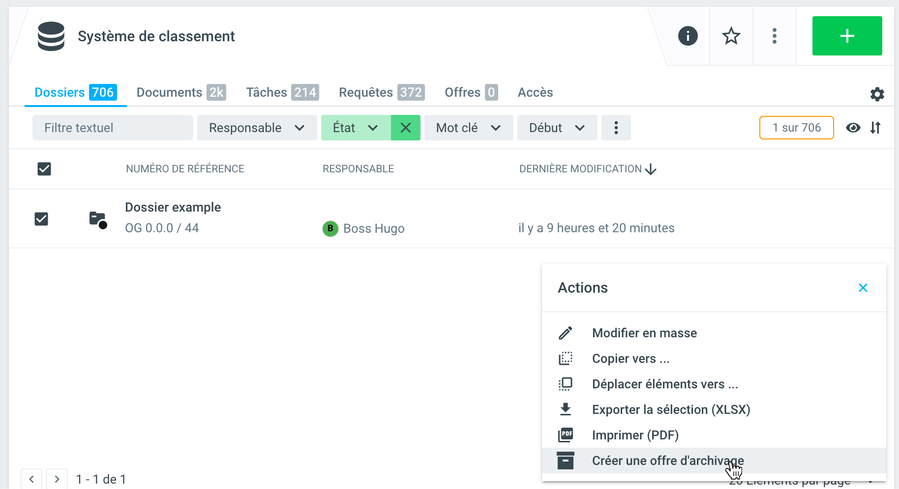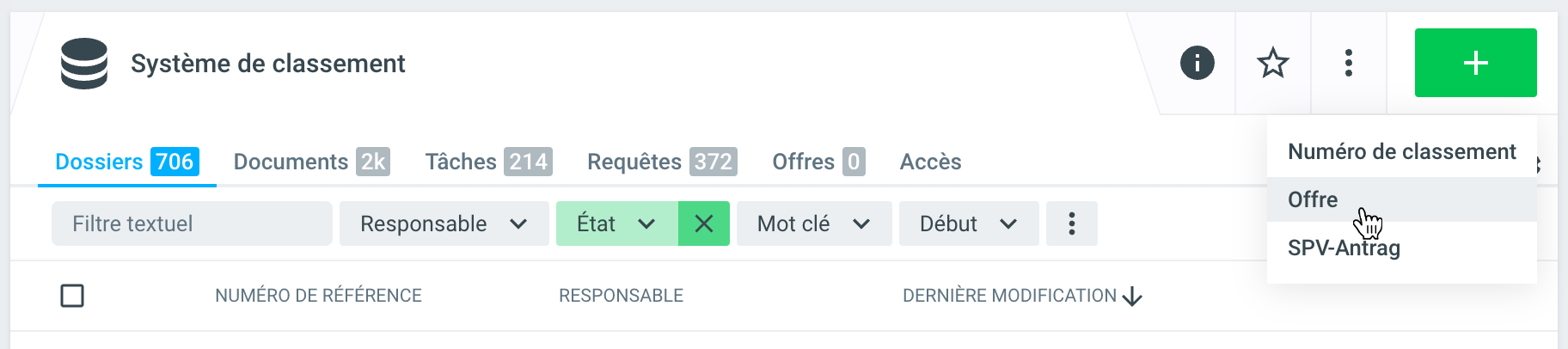 Pour la création directe d'une requête à partir d'une liste de dossiers, y compris la sélection des dossiers, la fonction requête est disponible.