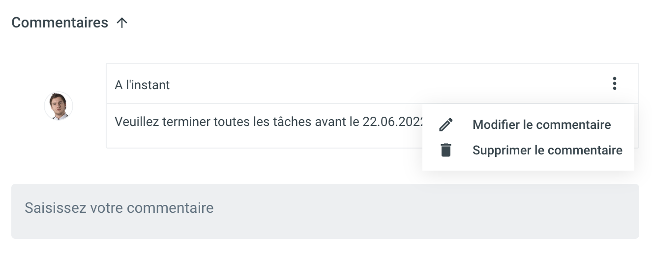 | Ici, vous pouvez saisir tout commentaire sur cette tâche. Les commentaires peuvent également être révisés et supprimés. ![]() |