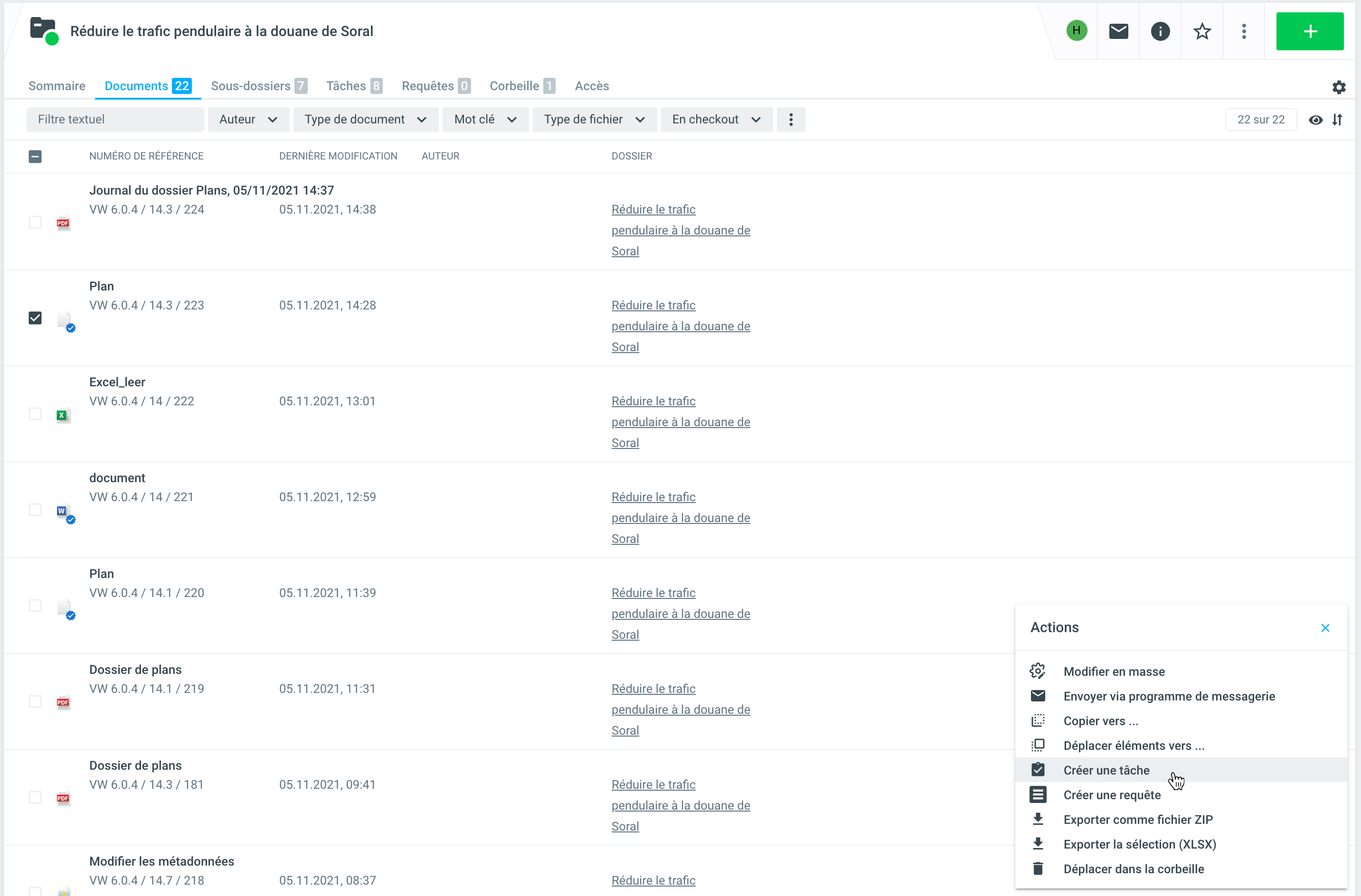 Documentset cliquez surNouvelle tâchedans le menu contextuel en bas à droite. Dans cette variante, les documents sélectionnés sont directement liés à la tâche.