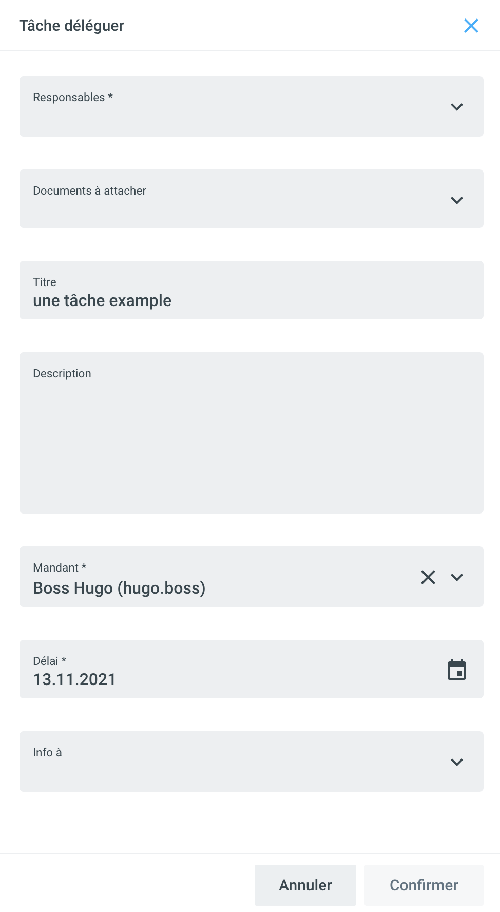| Si nécessaire, la tâche peut être décrite en détail dans le champ de description. |