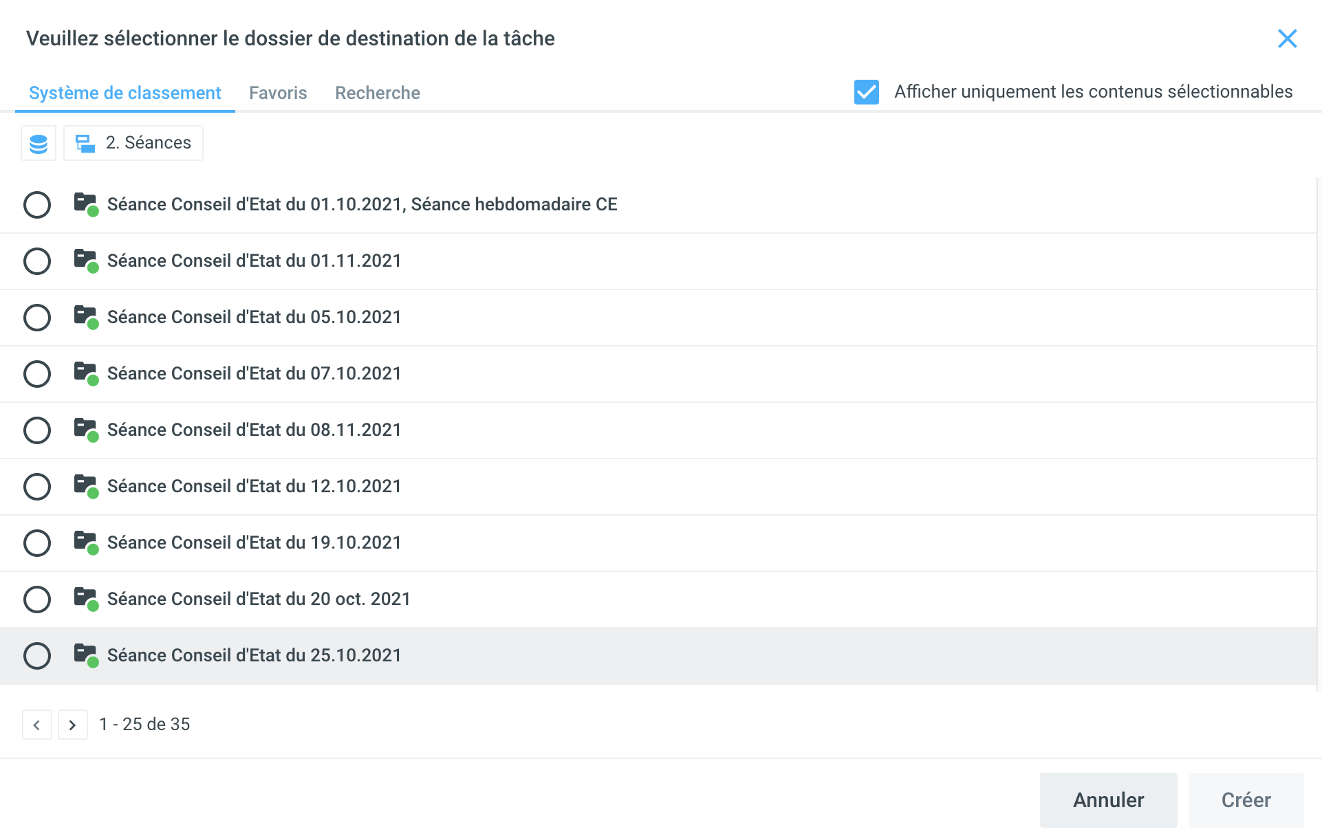 Si vous sélectionnez cette option, vous pouvez sélectionner le (sous-)dossier dans lequel la tâche doit être traitée.