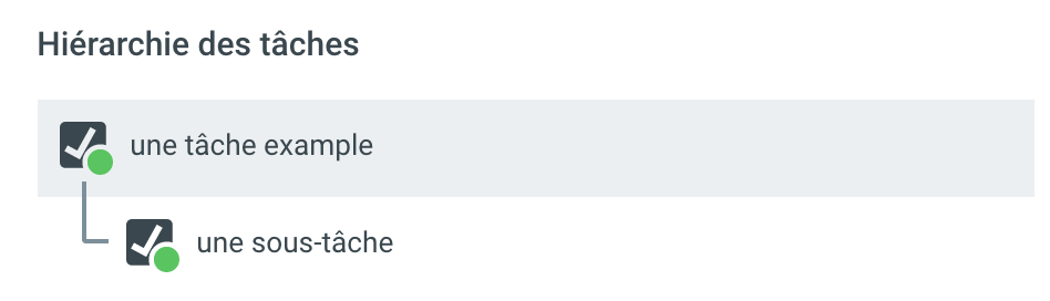 | Si la tâche contient d'autres sous-tâches, celles-ci sont affichées sous les détails de la tâche. Inversement, si la tâche est une sous-tâche, la tâche principale associée est également affichée ici. |