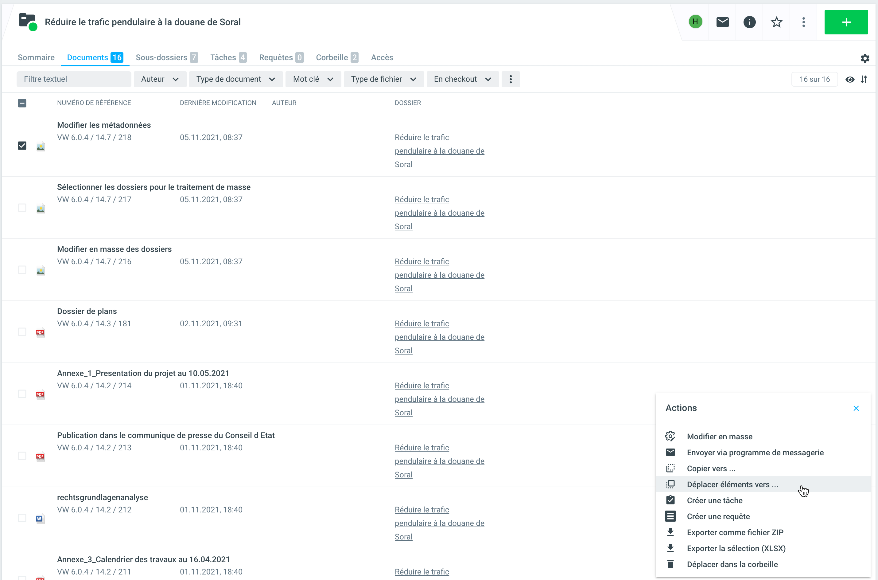 Sélectionnez l'élément (ou plusieurs éléments) souhaité dans la liste (par exemple dans l'onglet Documents) et déplacez-le.