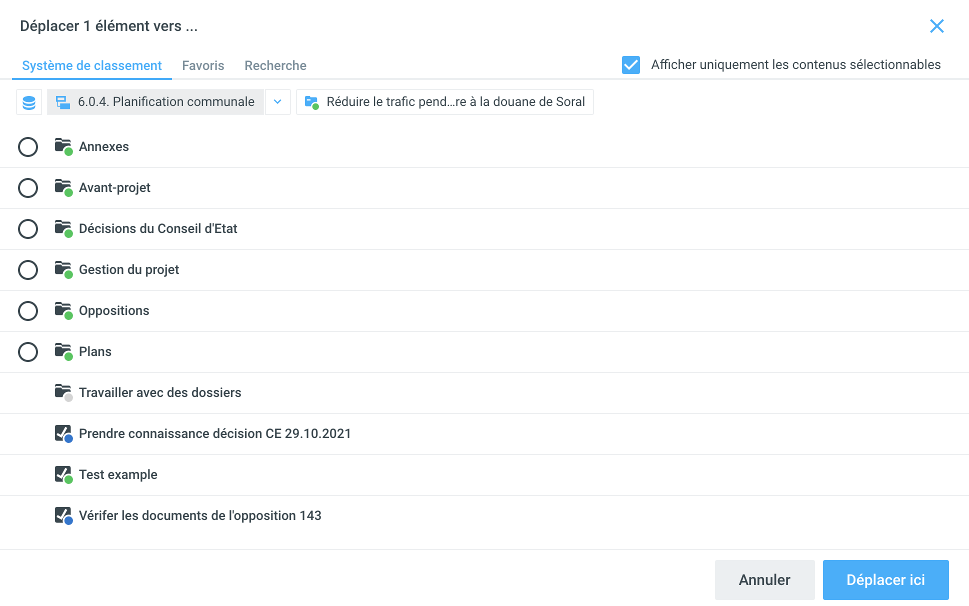 Sélectionnez ensuite la destination souhaitée vers laquelle vous souhaitez déplacer le ou les éléments sélectionnés. Dans le cas présent, il s'agirait du sous-dossier souhaité.