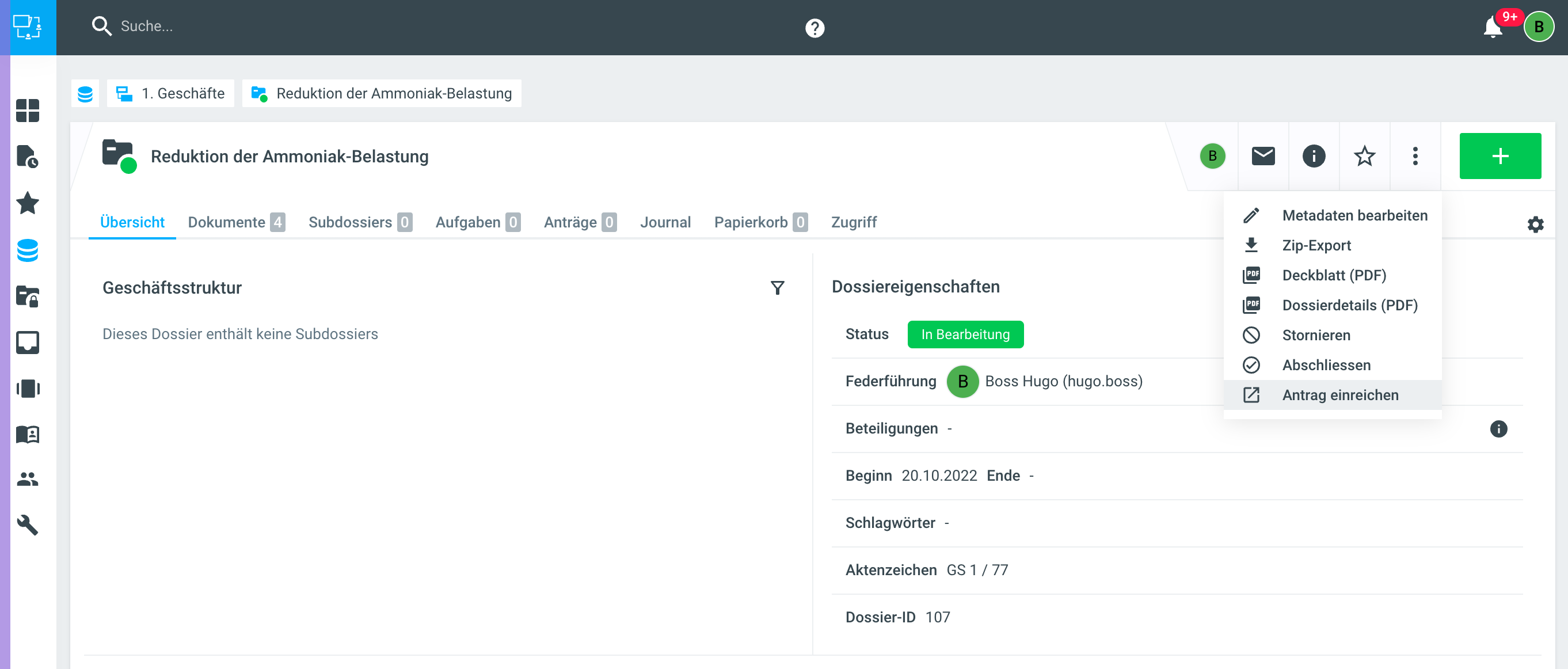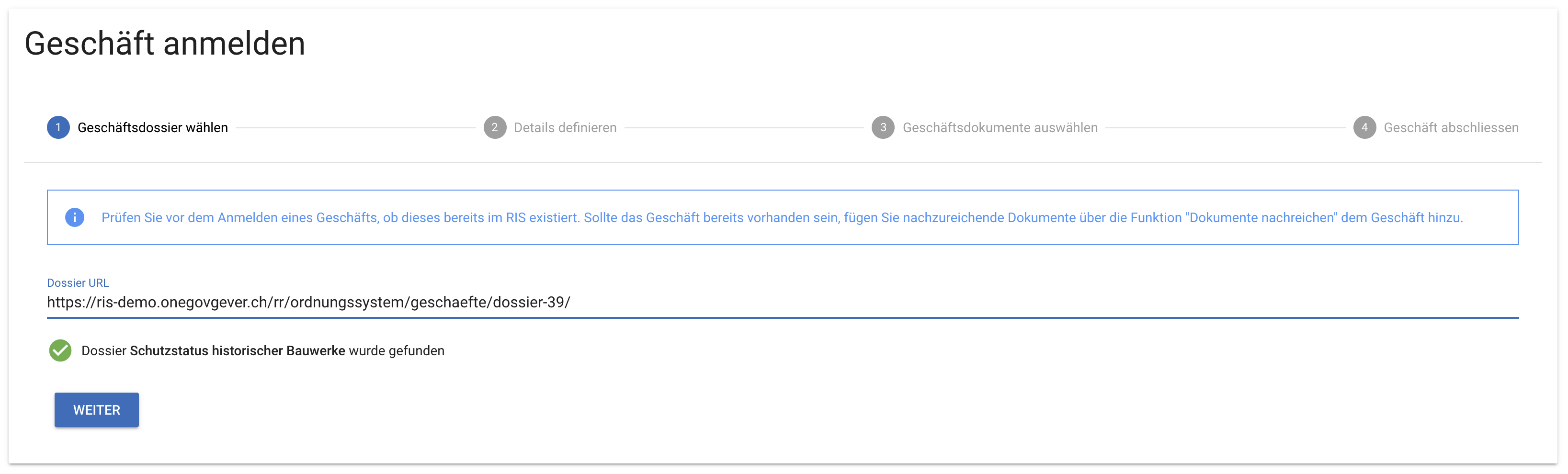 Schritt 1 - Geschäftsdossier wählen