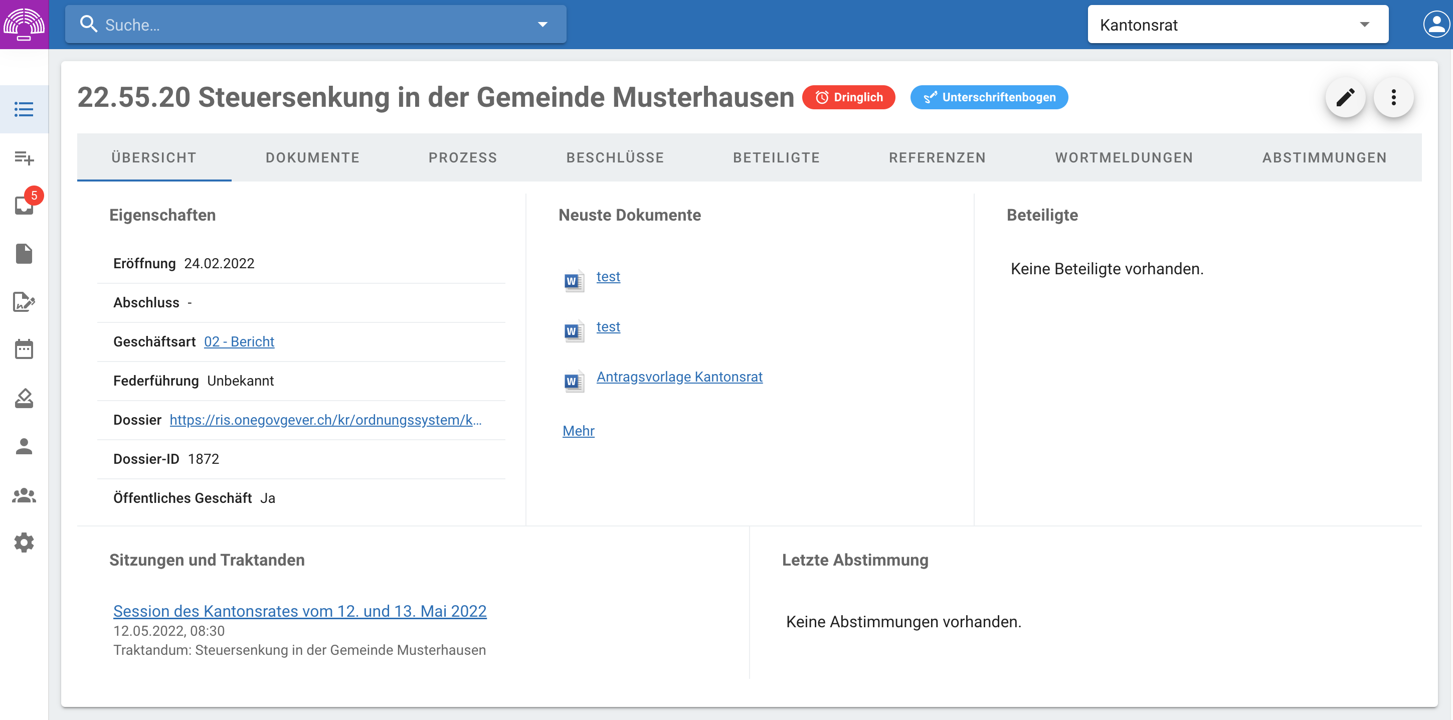 Geschäfte die als dringlich markiert wurden haben keine besondere Funktion, werden lediglich in der Geschäftsauflistung und auf der Sitzung entsprechend hervorgehoben.