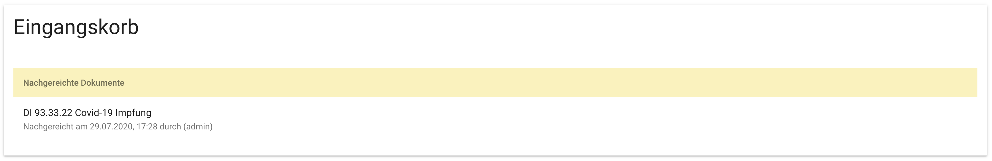 Um die Nachvollziehbarkeit zu gewährleisten, machen nachgereichte Dokumente einen Zwischenschritt über den Eingangskorb, wo sie von der zuständigen Stelle akzeptiert werden müssen.