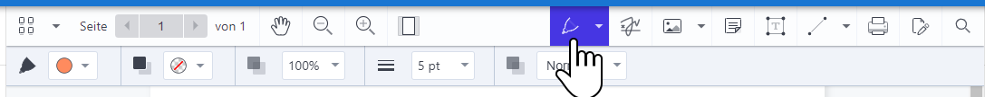 Une fois que vous avez sélectionné un document, celui-ci s'ouvre dans une vue PDF. Dans cette vue, de nombreuses fonctions sont à votre disposition pour annoter (joindre des notes manuscrites) dans la barre supérieure.