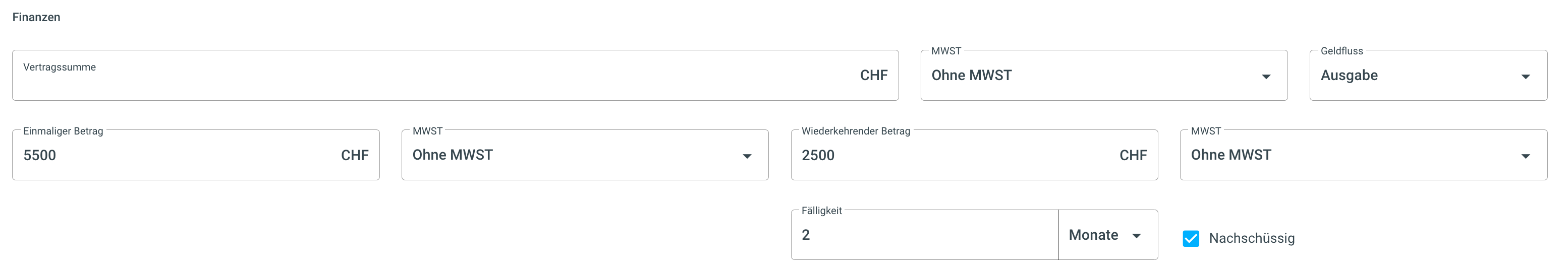 Neuer Vertrag erfassen
