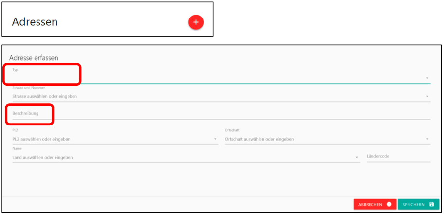 In einem ersten Schritt wird im Suchfeld die Adresse gesucht. Bei der Eingabe werden automatisch Vorschläge aus bereits erfassten Adressen angezeigt.Neue Adresse erfassen