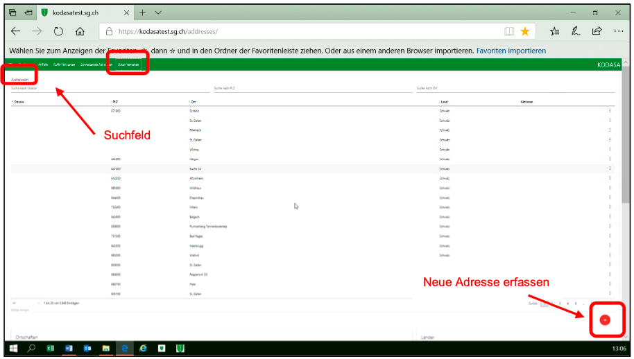 Sämtliche in KODASA erfassten Adressen werden in der Datenbank “Adressen” erfasst.