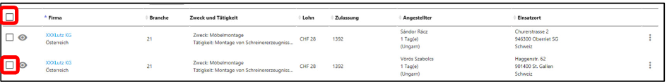 Mit dem obersten Auswahlfeld werden sämtliche sichtbaren Meldungen ausgewählt.