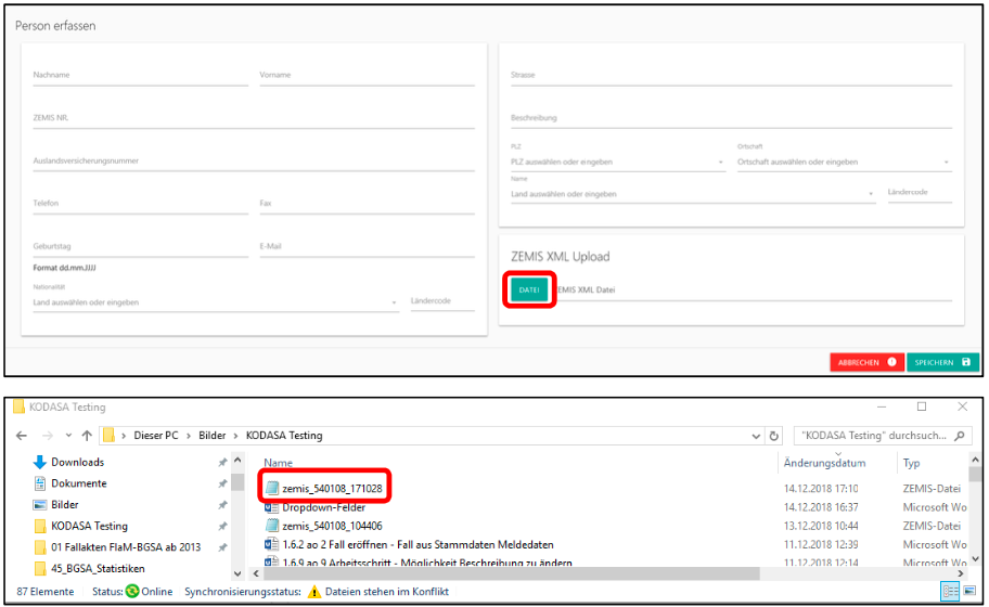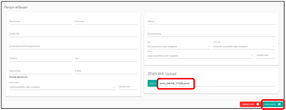 ZEMIS XML Upload