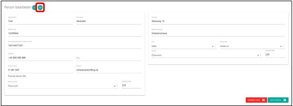 In der Maske Person erfassen kann der gespeicherte Datensatz über die