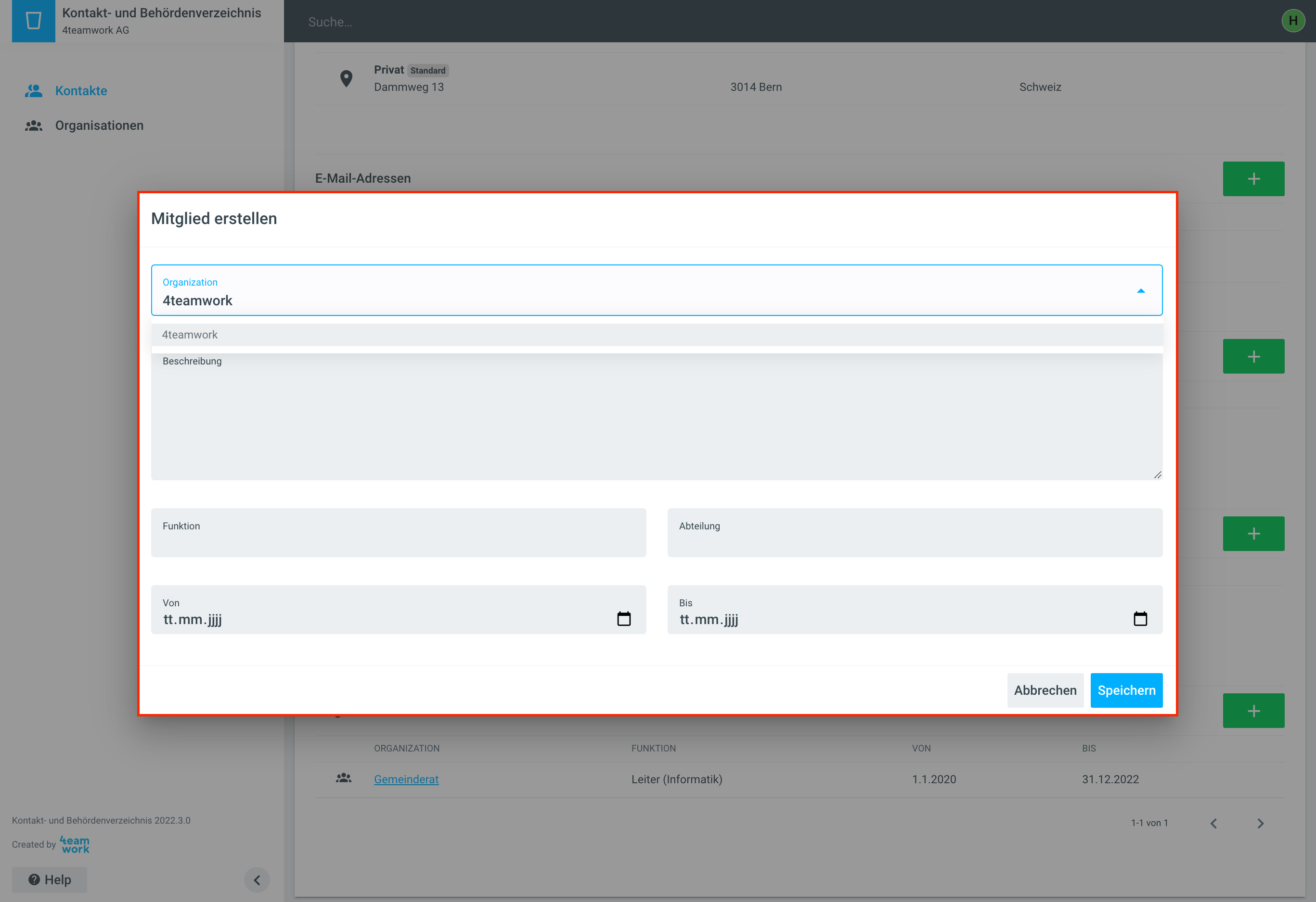 L’appartenance est le lien entre un contact et une organisation. Les appartenances peuvent être saisies aussi bien sur l'organisation que sur un contact. L'appartenance ne connaît pas de champs obligatoires, à l'exception de la personne ou de l'organisation sélectionnée.