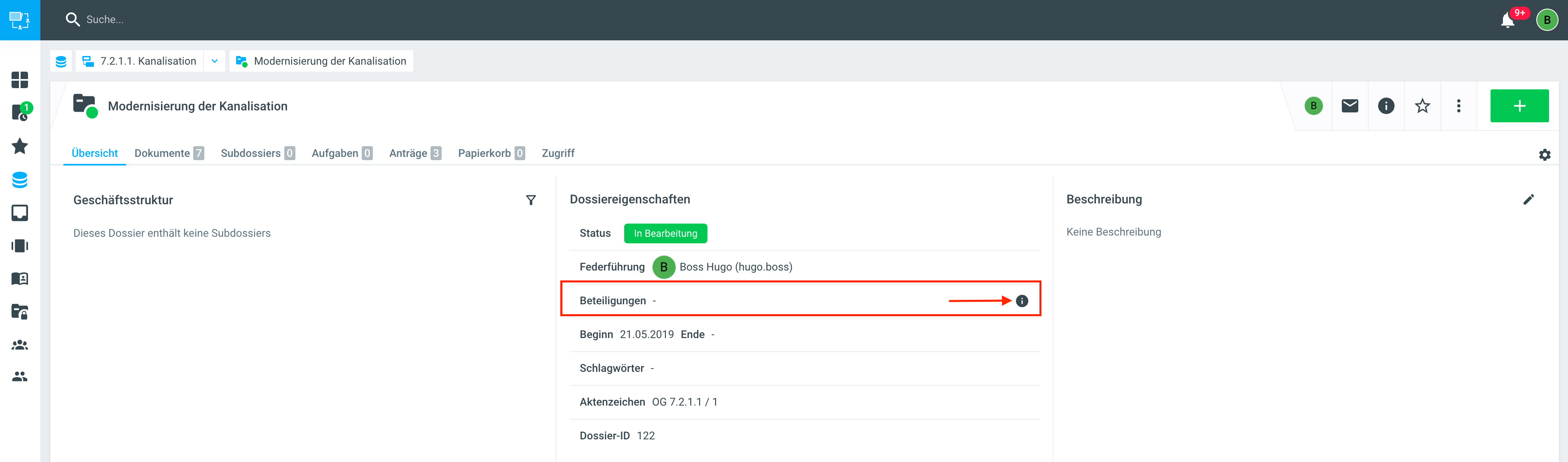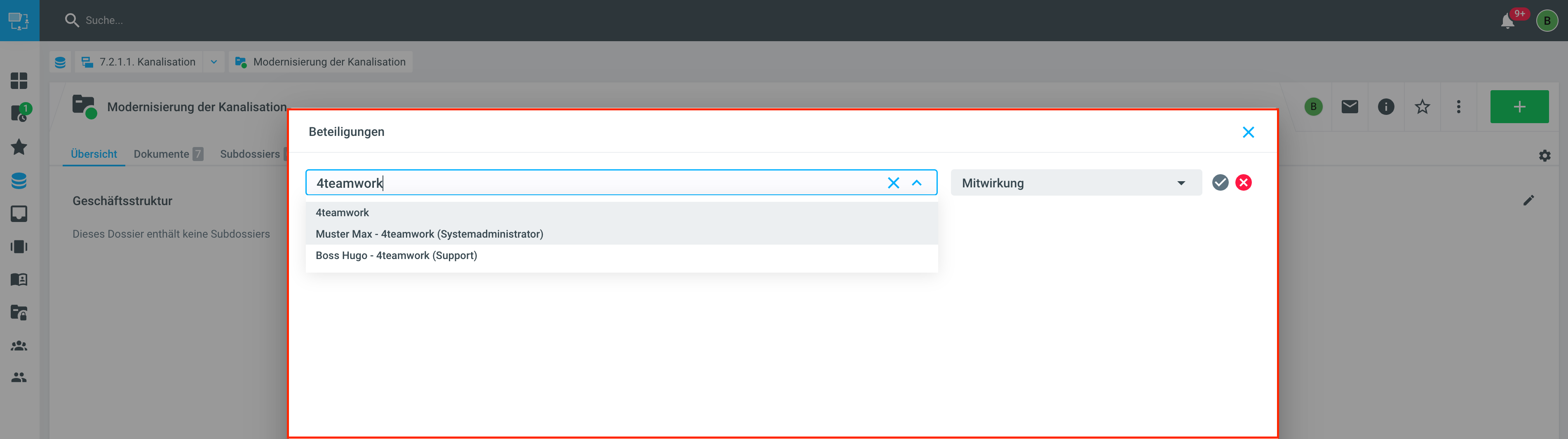 Sur un dossier, il est possible d'ajouter, de modifier ou de supprimer une participation.