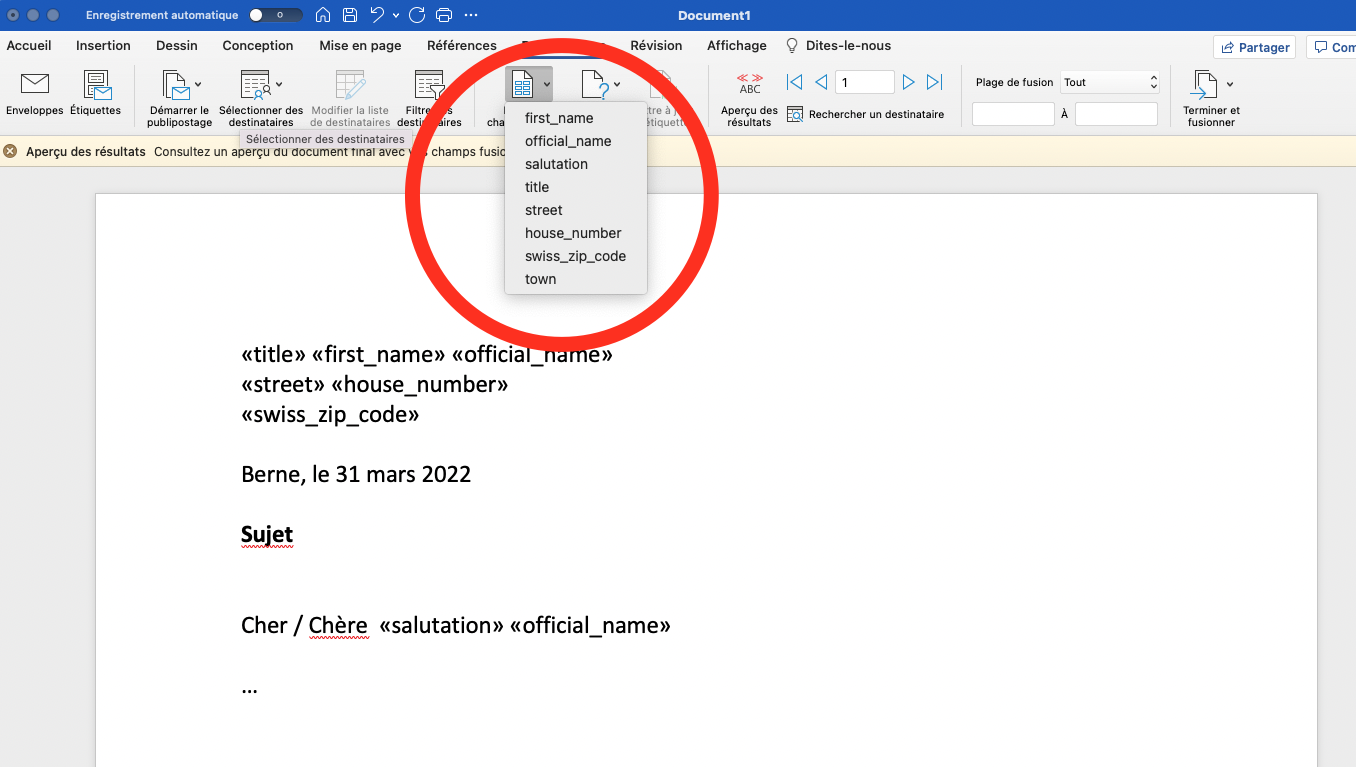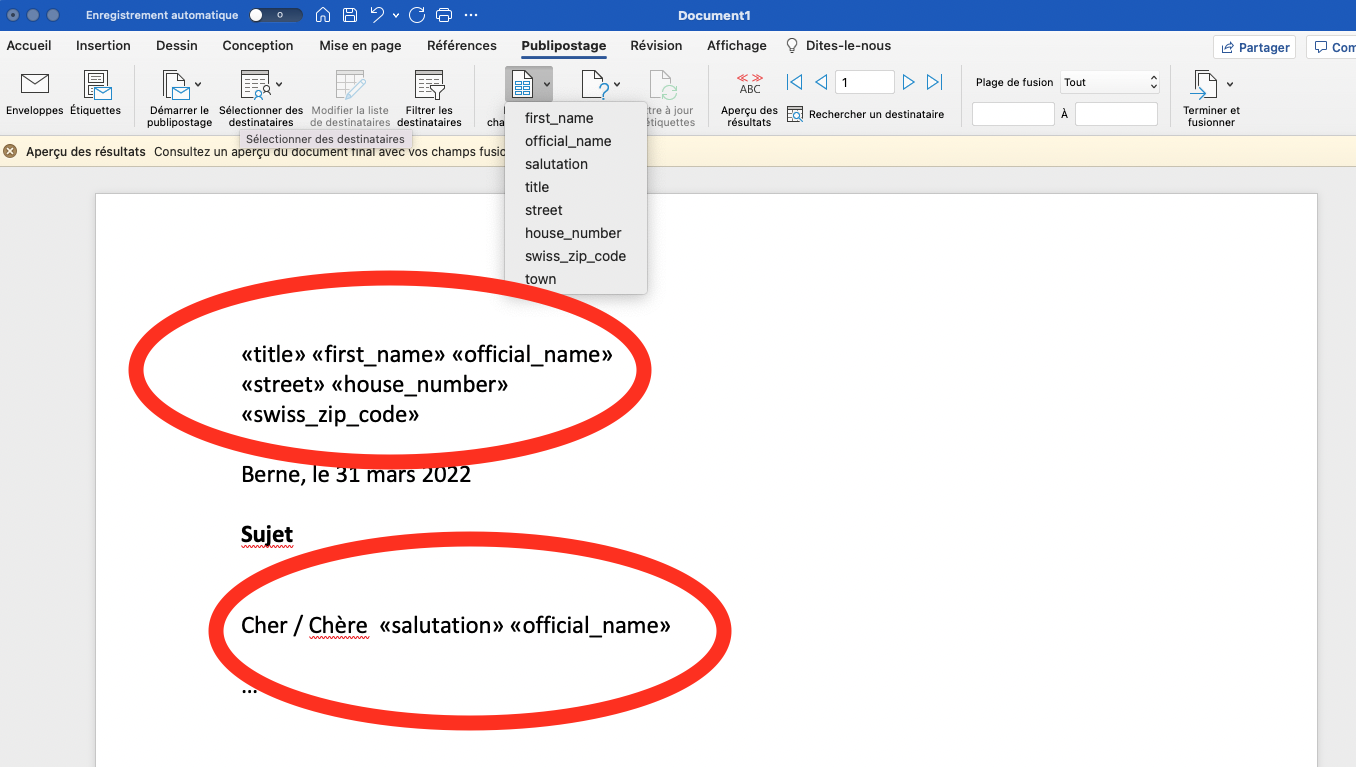 La fonctionnalité de publipostage de Word permet de créer des lettres en série. Les cas d’utilisation pour lesquels un publipostage est utilisé sont par exemple les lettres de remerciement, les invitations, les factures, etc.