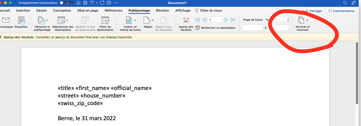 Le document de publipostage a été créé